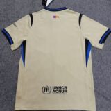 The FC Barcelona 2025/26 Away Jersey is an official collaboration between Nike and the Kobe Bryant brand, popularly known as the “Mamba” kit. This striking away shirt features a light yellow-gold (Team Gold) base, creatively inspired by the Black Mamba snake, with distinct black and purple (Persian Violet) accents—a nod to both Kobe Bryant’s Lakers colors and the Mamba legacy. The design is further elevated with a subtle snake-skin pattern visible on both the Barça crest and key details throughout the jersey, making it a true collector’s piece.