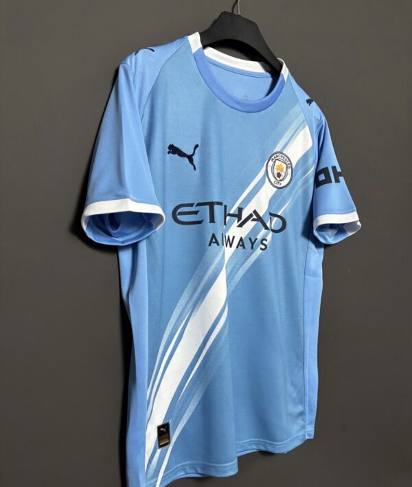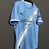 Celebrate the spirit of champions with the official Manchester City 2024/25 Home Jersey, crafted by PUMA. Inspired by the club’s legacy and designed for the future, this jersey features a bold and dynamic look with sweeping diagonal white and sky blue lines symbolizing Manchester’s movement, energy, and passion for the beautiful game.