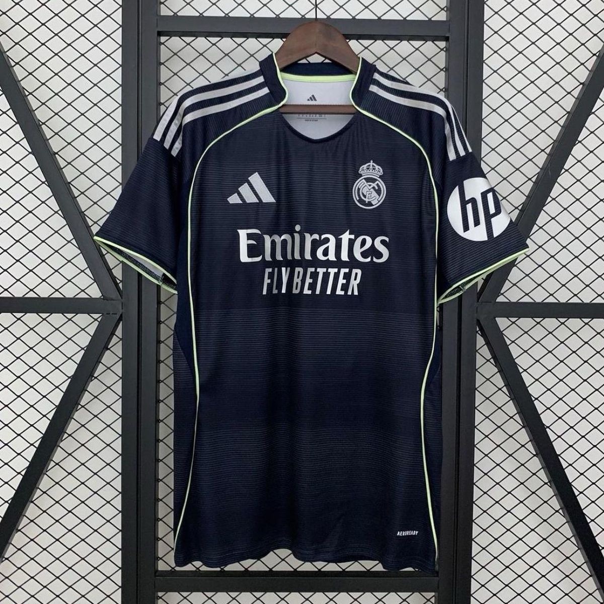 Step into the away days with confidence in the Real Madrid 2025/26 Away Jersey. Designed in a deep midnight navy, this jersey fuses elegance with elite performance. Fluorescent lime piping runs along the silhouette for a modern touch, while the subtle textured pattern across the body adds dimension without distraction.
